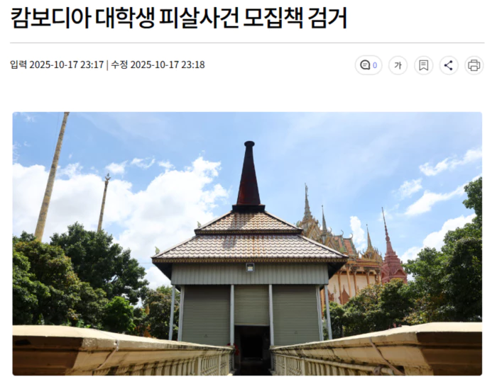 캄보디아 한국인 대학생 피살 사건을 수사 중인 경찰이, 피해자를 캄보디아로 보낸 혐의로 대포통장 모집책을 검거했습니다.
