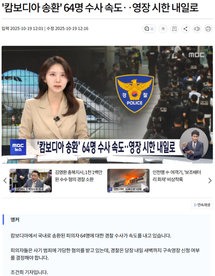 앞서 캄보디아 당국은 범죄단지 소탕 당시 압수한 이들의 휴대전화를 우리 정부에 건넸는데, 초기 수사의 시간을 아낄 핵심 단서가 될 것으로 경찰은 기대하고 있습니다.
