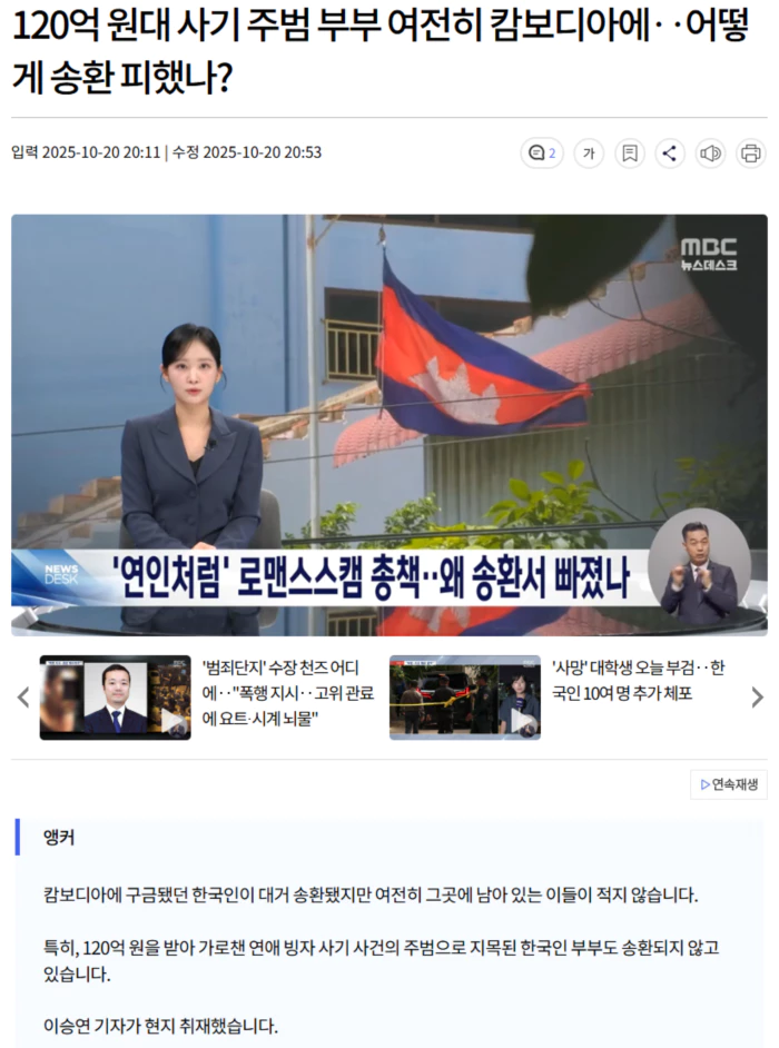캄보디아 경찰에 우리 돈 6천만 원을 찔러줬다는 소문이 돌았습니다.