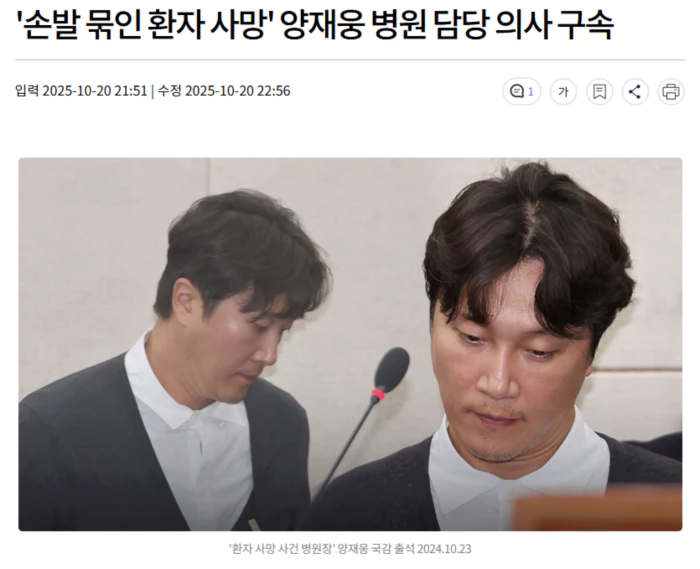 정신건강의학과 전문의 양재웅 씨가 운영하는 병원에서 손발이 묶인 환자가 숨진 가운데, 당시 환자를 담당했던 의사가 구속됐습니다.
