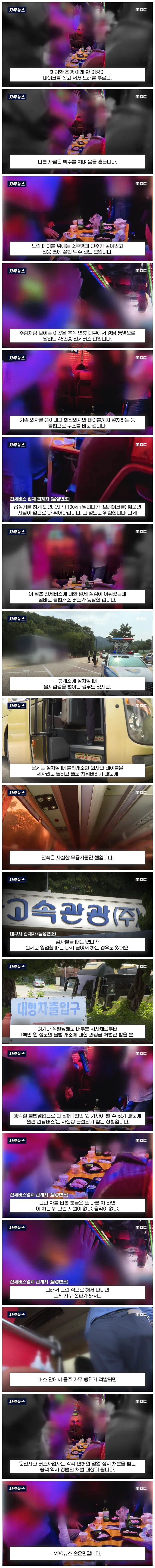 주점처럼 보이는 이곳은 추석 연휴 대구에서 경남 통영으로 달리던 45인승 전세버스 안입니다.