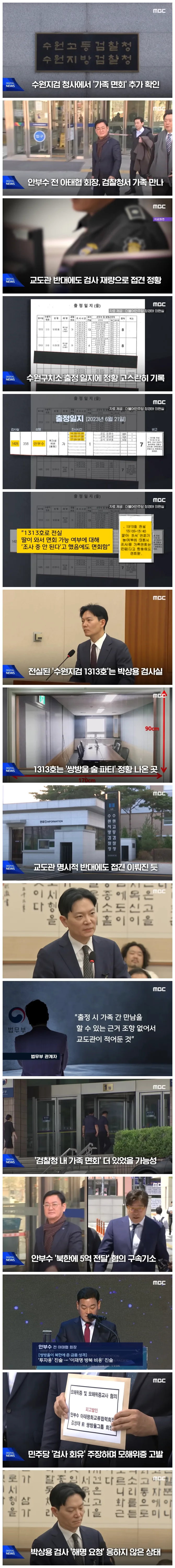 '술 파티 진술 세미나' 의혹을 받는 수원지검에서 이번엔 규정을 어기고 출정 조사를 받는 구속 피고인에게 검찰청 안에서 가족을 만나게 해준 사실이 추가 확인됐습니다.