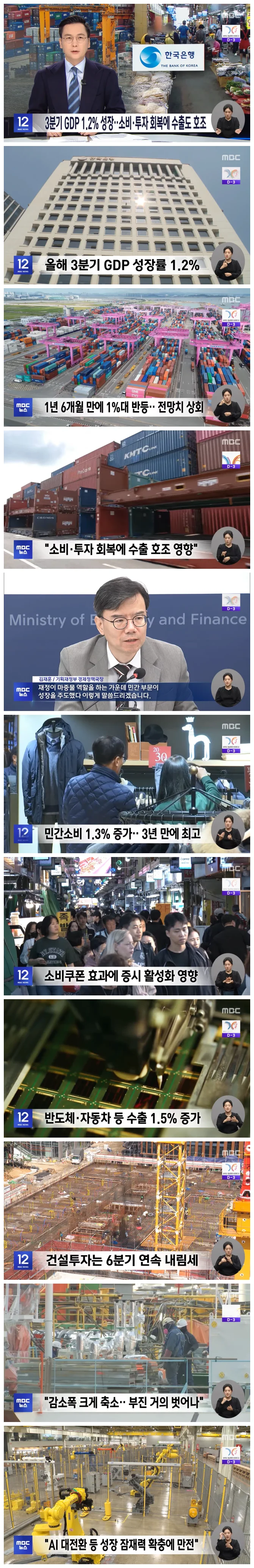소비쿠폰 효과로 민간 소비가 늘고, 수출 호조가 맞물리면서 1년 반 만에 다시 1%대 성장률을 되찾은 겁니다.
