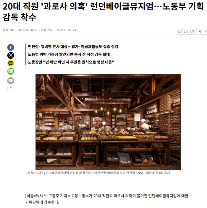 | 인기 빵집 '런던베이글뮤지엄' 청년 주임의 죽음.. 유족 "주 80시간 근무 과로사" (0) | 2025.10.29 |