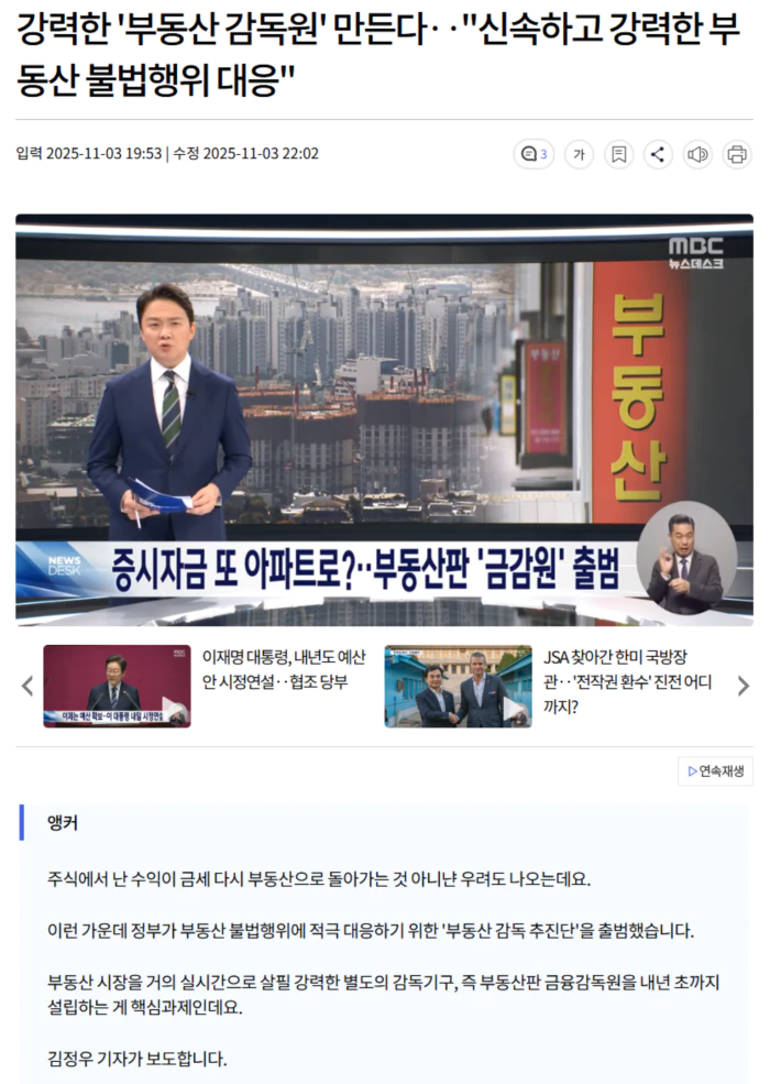 "각 부처의 전문 인력으로 구성된 상설 조직인 부동산 감독 추진단을 통해, 보다 신속하고 강력하게 부동산 불법 행위에 대응‥"