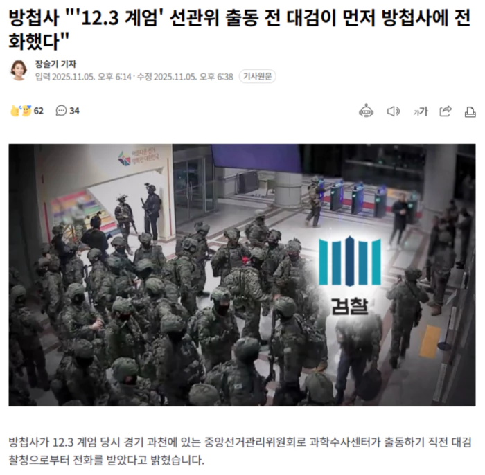 방첩사는 계엄 해제 전인 0시 37분에 이뤄진 통화에서 대검 과학수사센터장이 '우리도 출동해야 하는데 방첩사는 어떻게 하냐'고 묻는 등의 내용이 있었다고 설명했습니다.