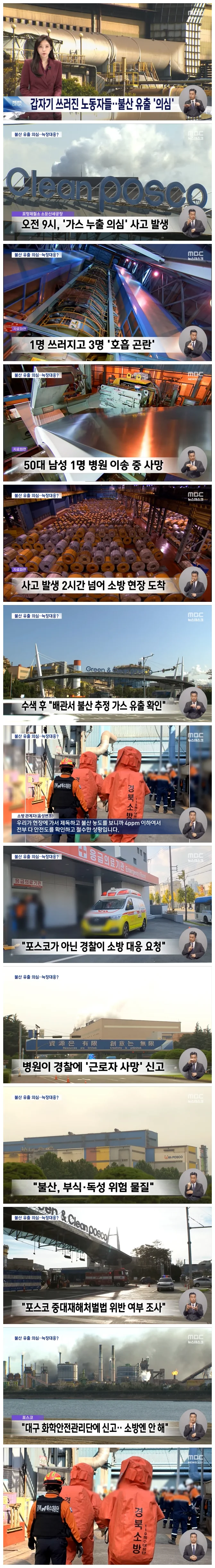 오늘(11/5) 포스코 포항제철소에서 가스 유출 의심 사고가 발생해 1명이 숨지고 3명이 다쳤습니다.