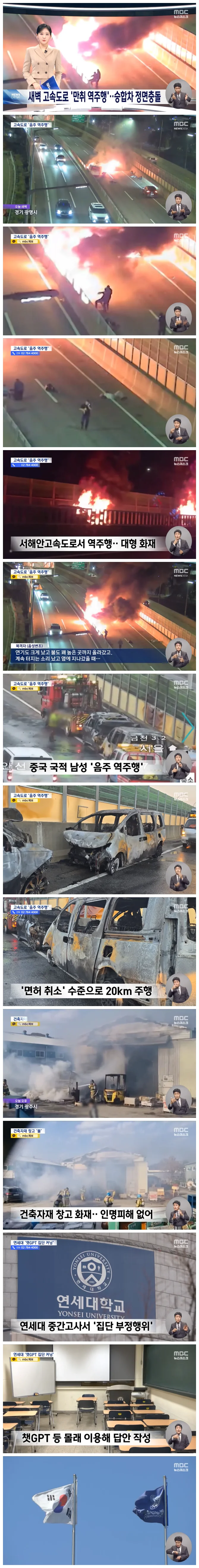 오늘(11/9) 새벽 술을 마신 운전자가 고속도로를 역주행하다 마주 오던 차량과 충돌하면서 대형 화재로 이어졌습니다.