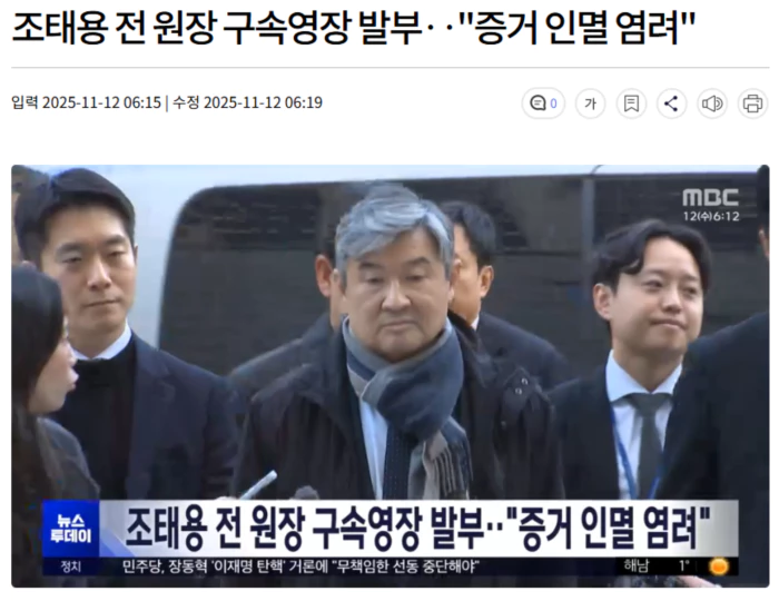 서울중앙지법 박정호 영장전담 부장판사는 어제 조 전 원장의 구속 전 피의자 심문을 진행한 뒤 "증거를 인멸할 염려가 있다"며 오늘 영장을 발부했습니다.