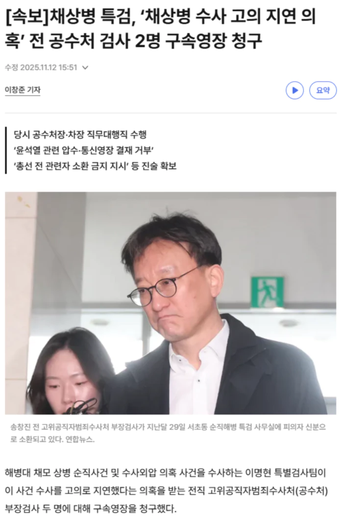 특검은 12일 오후 김선규·송창진 전 공수처 수사부장검사에 대한 구속영장을 서울중앙지법에 청구했다고 밝혔다.