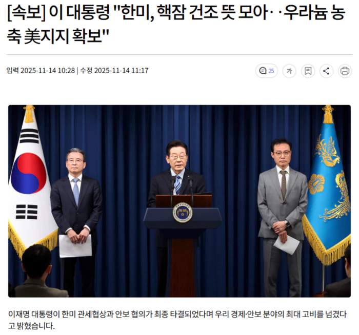 | 李대통령 "'빨리 합의해라' 내부 압박 힘들었다.. 늦었다고 지탄 말아달라" (0) | 2025.11.14 |