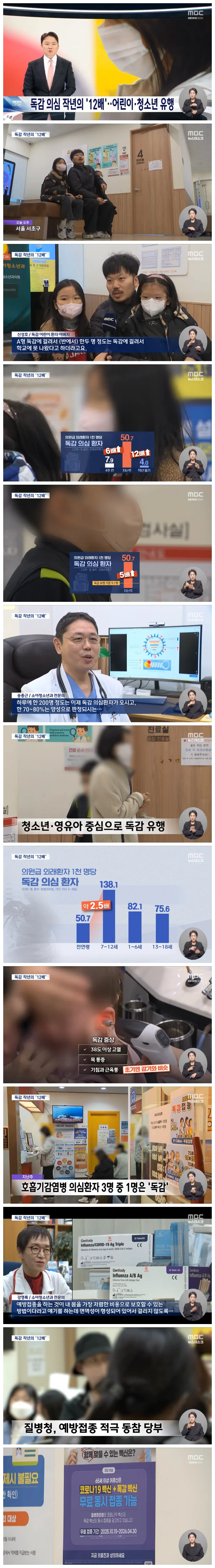 독감환자가 작년 이맘때에 비해 무려 12배나 늘었습니다.