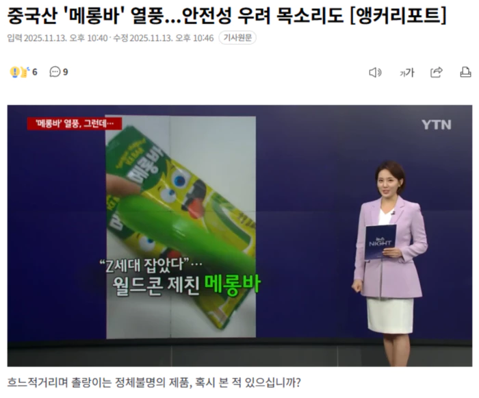 중국산 아이스크림인 메롱바는 GS25에서 '월드콘'을 제치고 아이스크림 매출 순위 1위에 올랐습니다.