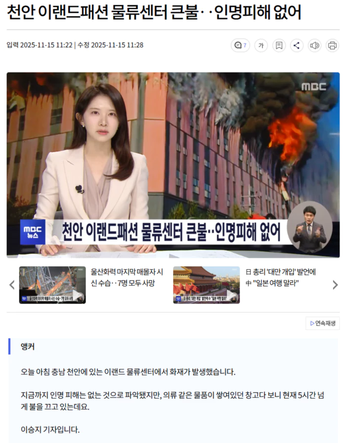 | 이랜드 물류센터 화재.. 수천 미터 상공에서도 포착 (0) | 2025.11.15 |