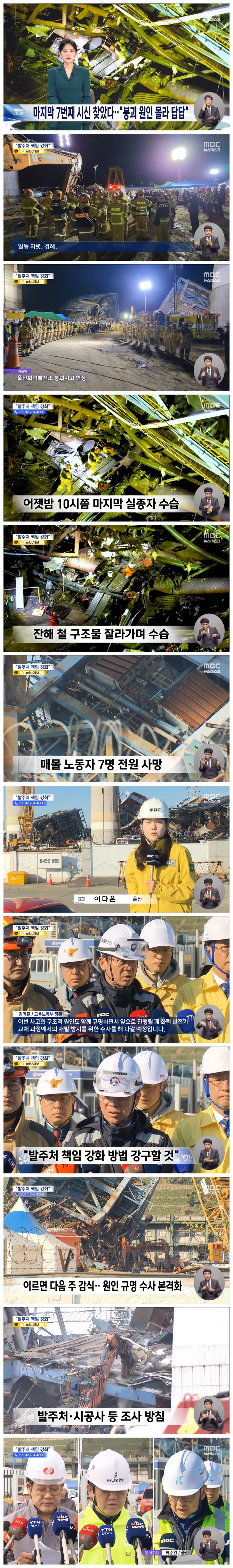 울산화력발전소 붕괴 사고 마지막 실종자가 어젯밤 숨진 채 발견됐습니다.