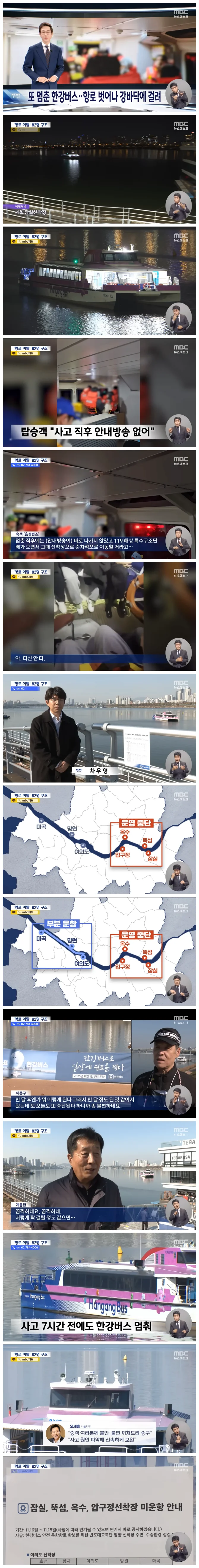잦은 안전사고로 논란이 계속돼 온 한강버스가 또다시 멈춰 섰습니다.