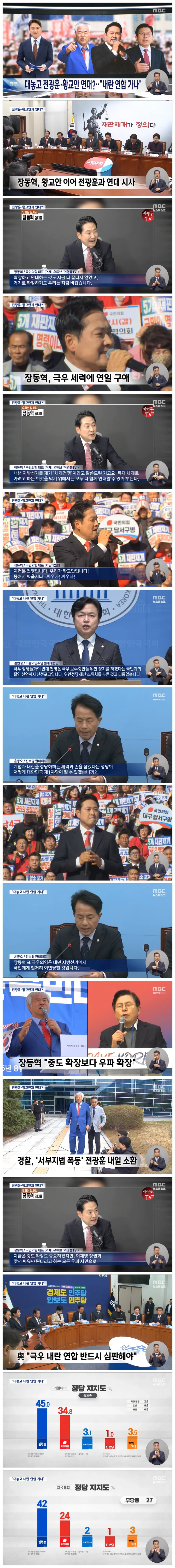 최근 "우리가 황교안이다"라고 외치며 부정선거 음모론을 옹호한단 비판을 받았던 장동혁 국민의힘 대표가, 이번엔 내년 지방선거에서 전광훈 씨 등 극우 세력과 연대할 가능성마저 시사했습니다.