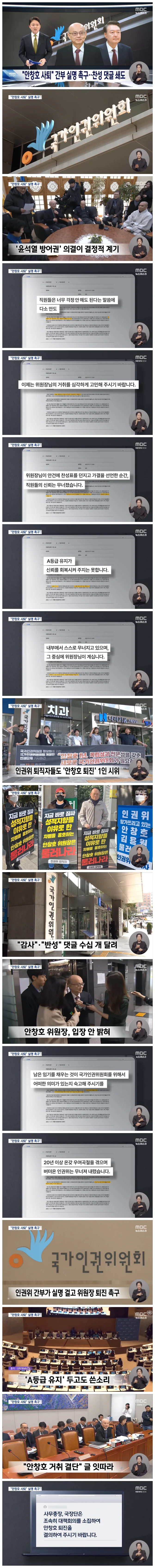 국가인권위 안창호 위원장에게 자진 사퇴를 촉구하는 직원들의 실명 게시물이, 인권위 내부망에 잇따라 올라오고 있습니다.