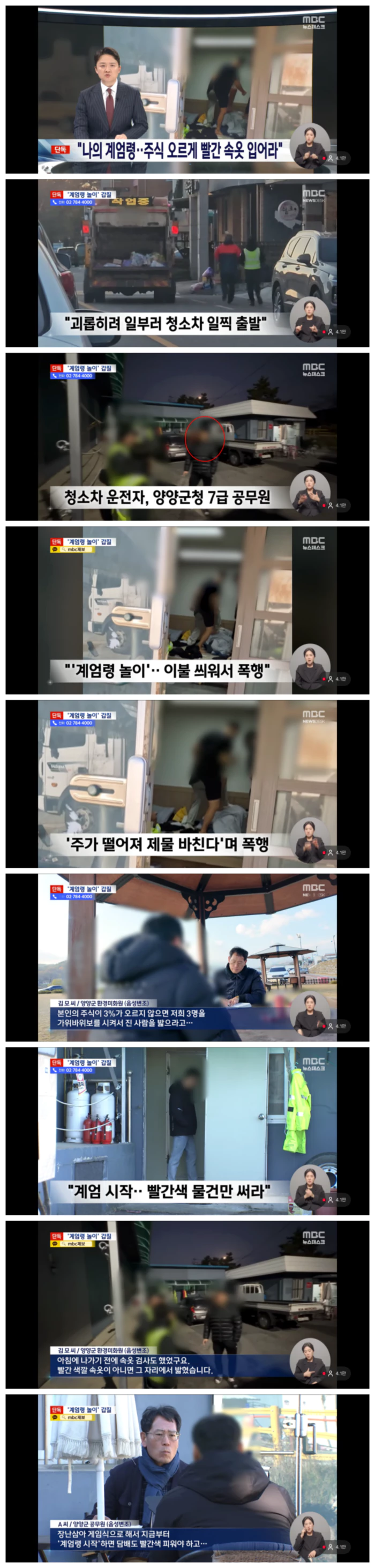 이른바 계엄령 놀이를 하겠다며 환경미화원에게 이불을 뒤집어씌운 채 폭행한 공무원이 있다고 합니다.