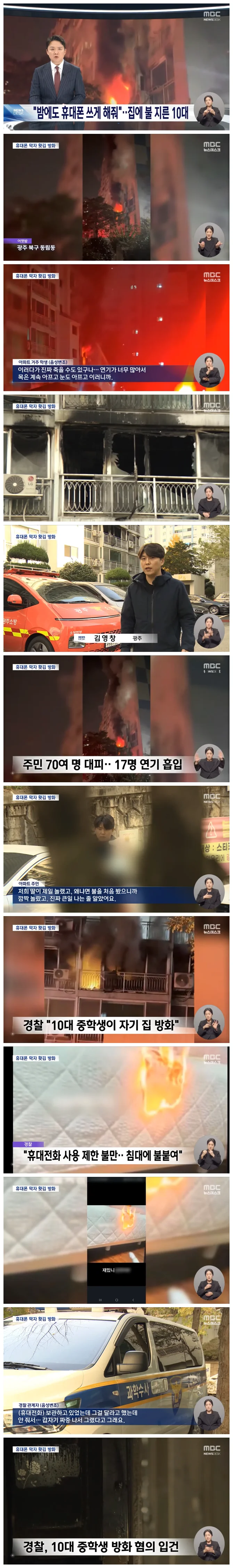 휴대폰을 쓰지 못하게 하자 홧김에 자기 방에 불을 지른 중학생이 있다고 합니다.