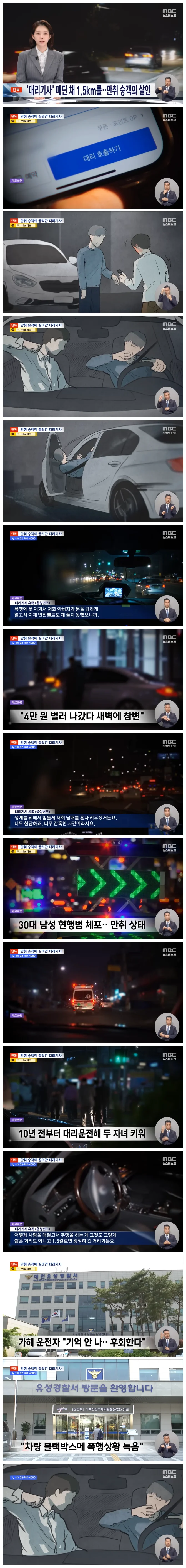 60대 대리운전 기사는 안전벨트도 풀지 못하고 차 밖에 매달려 1km 넘게 끌려가다 결국 숨졌습니다.