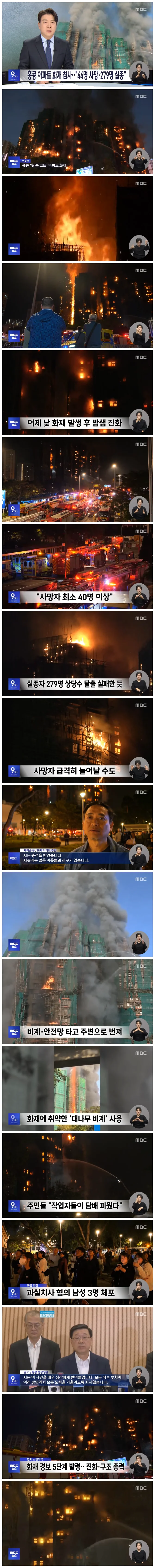 홍콩의 아파트 단지에서 발생한 화재가 홍콩 역사상 손꼽히는 대형 인명참사로 번질 조짐입니다.