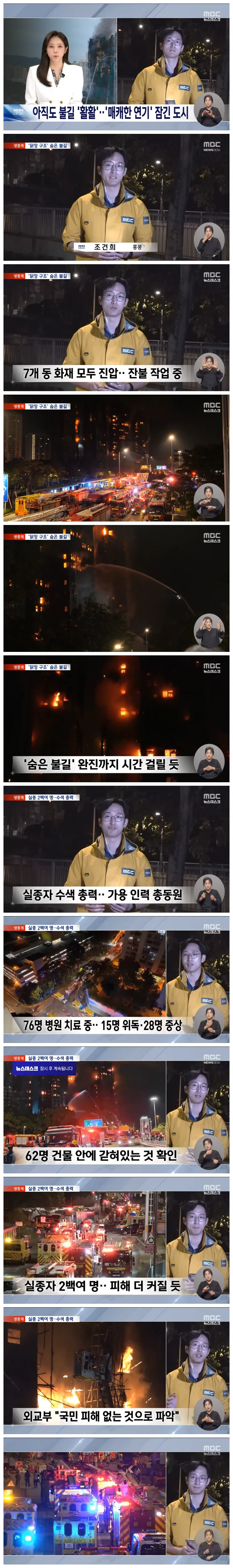 앞서 예고해 드린 대로 뉴스가 진행되는 동안 조건희 기자가 역대급 참사가 발생한 홍콩 화재현장에 도착했습니다.