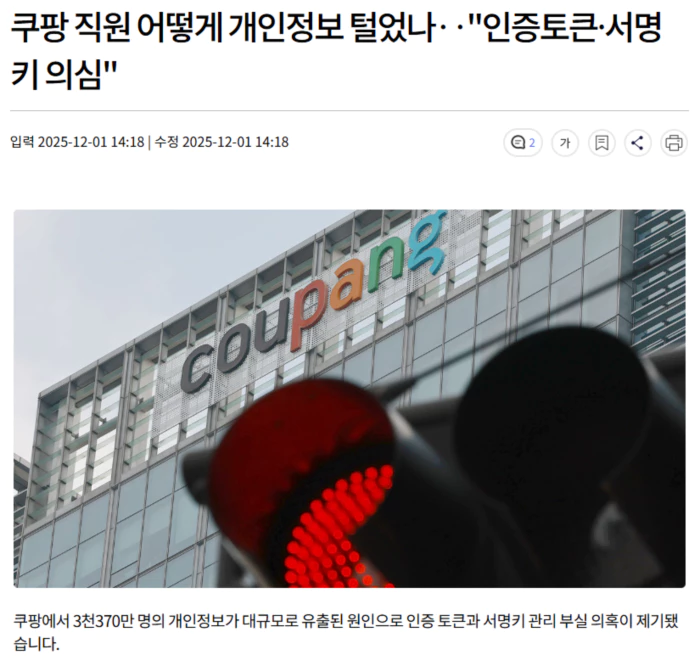 과학기술정보방송통신위원장 최민희 의원실에 따르면 쿠팡 고객 정보를 빼돌린 건 현재는 퇴사한 인증 관련 담당자로, 업계는 이 직원이 인증 관련 권한을 갖고 있어 퇴사 전부터 로그인 없이 취약점에 접근하기 쉬웠을 것으로 보고 있습니다.