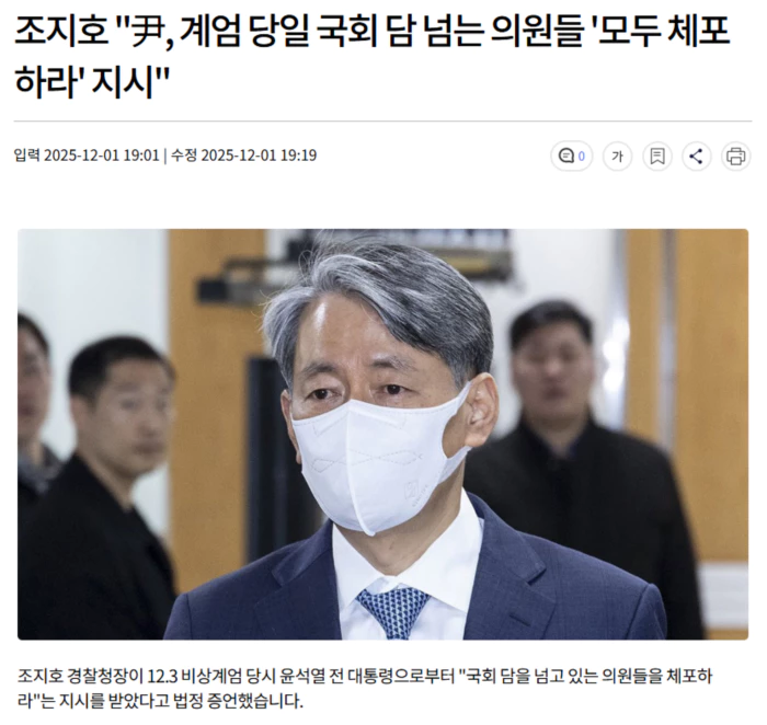 그러자 특검 측이 "윤 전 대통령이 '국회 들어가는 건 다 불법이다, 체포하라'고 말했느냐"고 묻자, 조 청장은 "그 표현을 분명히 기억한다"고 답했습니다.
