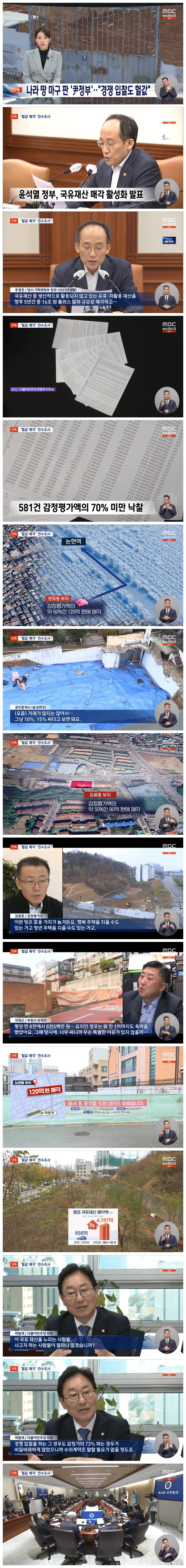MBC가 윤석열 정부 당시 경쟁 입찰 방식으로 매각된 1,700여 개의 부지를 확인해 봤는데, 이 중 3분의 1은 감정가의 70% 미만에 낙찰된 것으로 드러났습니다.