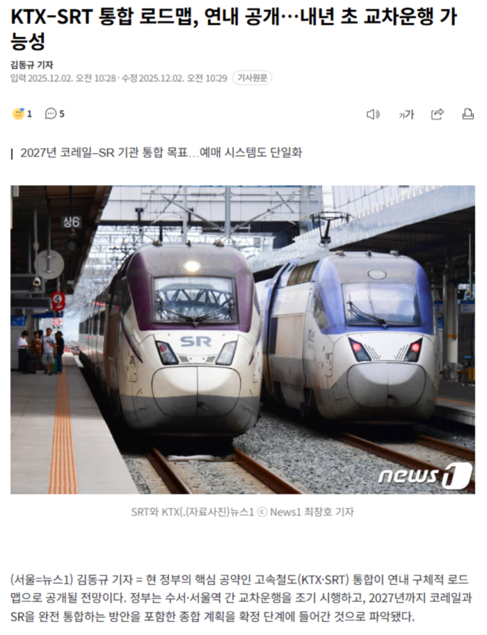 기관통합까지 완료되면 2016년 SRT 개통 이후 10여 년간 유지돼 온 경쟁 체제는 사실상 막을 내리게 된다.