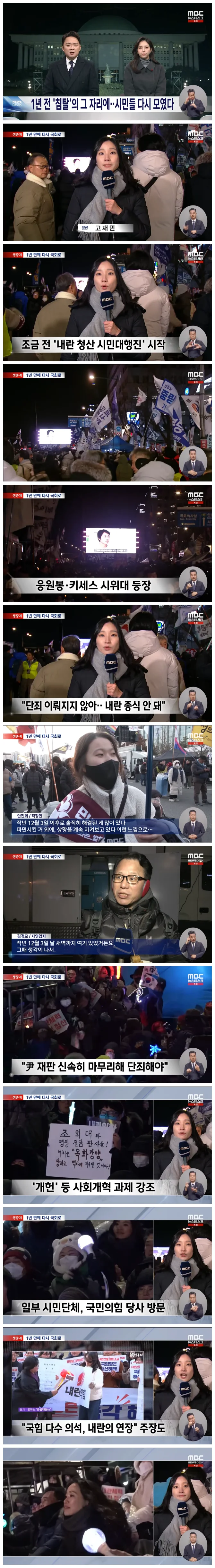하지만 그 우연을 필연으로 만들기 시작한 건 1년 전 국회 앞으로 뛰쳐나와 맨몸으로 계엄군을 막아선 시민들이었고, 덕분에 뉴스데스크도 오늘 이렇게 여러분과 함께 할 수 있습니다.