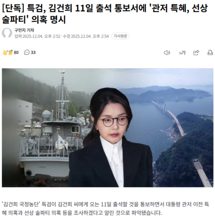 | '김건희 국정농단' 특검, 오후 김건희 소환 '매관매직 의혹' 조사 (0) | 2025.12.04 |