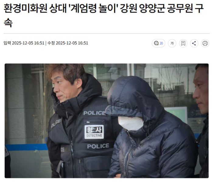 환경미화원을 상대로 갑질 의혹을 받는 강원 양양군 7급 공무원이 구속됐습니다.