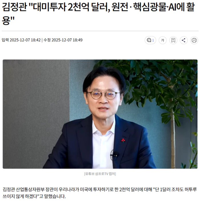 김 장관은 주요 투자 분야로는 원자력 발전과 핵심광물, 인공지능을 제시했습니다.