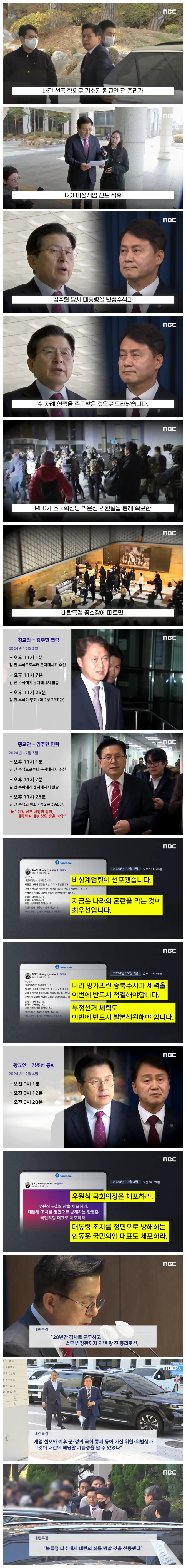 MBC가 조국혁신당 박은정 의원실을 통해 확보한 내란특검 공소장에 따르면, 황 전 총리는 지난해 12월 3일 오후 11시 1분 김 전 수석으로부터 첫 문자 메시지를 받고 6분 뒤엔 김 전 수석에게 메시지를 보냈습니다.