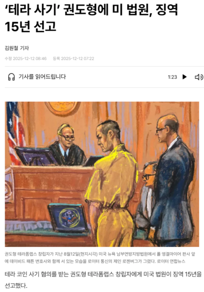 당시 권씨는 “내 회사가 발행한 가상화폐 구매자들에게 사기를 치는 계획에 다른 사람들과 고의로 동의했고, 실제로 사기를 저질렀다”며 “(1달러) 연동 회복 과정에서 트레이딩 회사의 역할을 공개하지 않음으로써 왜 연동이 회복됐는지에 대해 거짓되고 오해의 소지가 있는 설명을 했다.