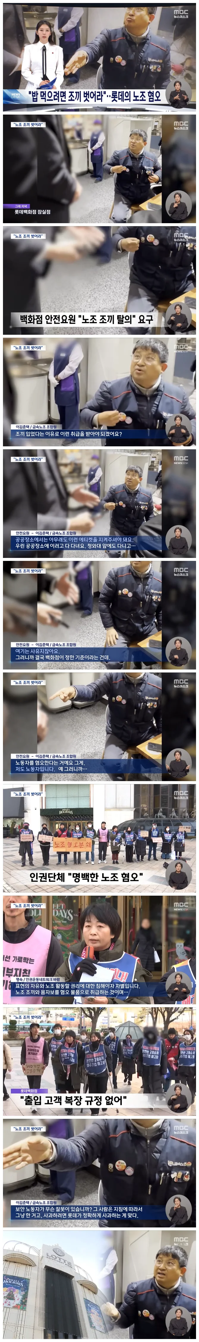 롯데백화점 잠실점에서 보안요원이 금속노조 조합원들에게 '노조 조끼'를 벗어달라고 요구해 논란이 커지고 있습니다.
