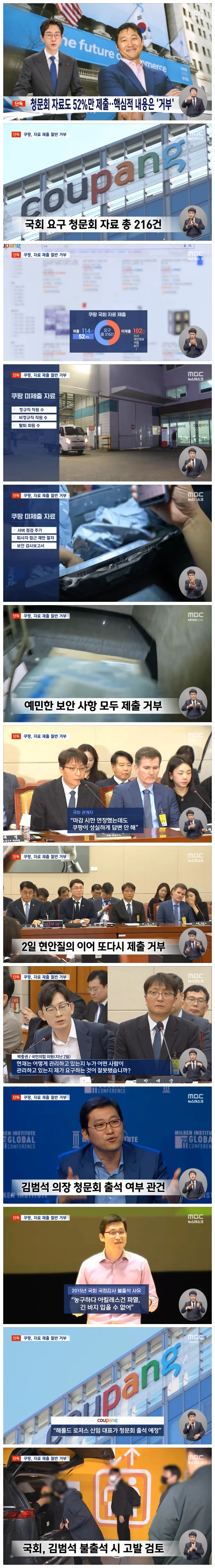 MBC 취재결과 국회가 요청한 청문회 자료도 쿠팡이 절반 가까이 사실상 제출을 거부한 것으로 확인됐습니다.
