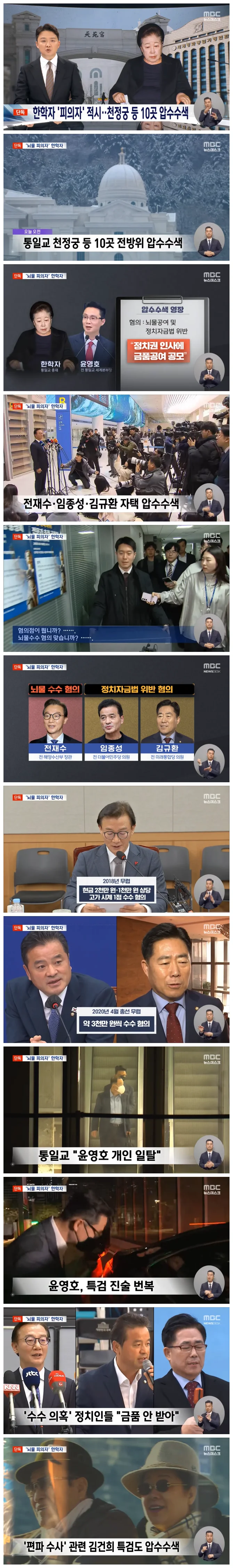 한학자 통일교 총재도 뇌물공여와 정치자금법 위반 혐의 피의자로 전환됐습니다.