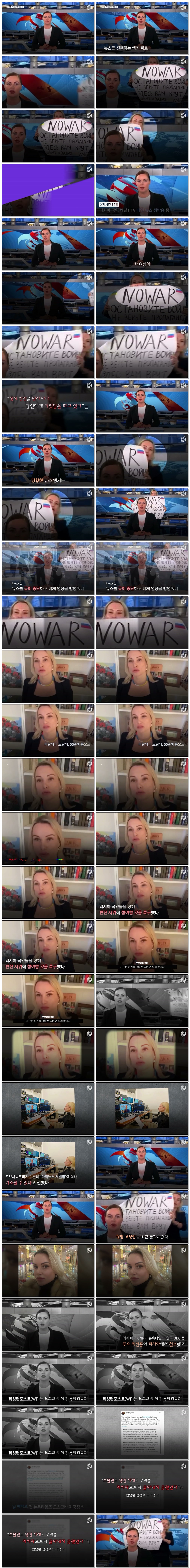 러시아 국영 채널1 TV 뉴스 방송 도중 한 여성이 전쟁 반대 문구가 적힌 종이를 들고 기습 시위를 벌였습니다.