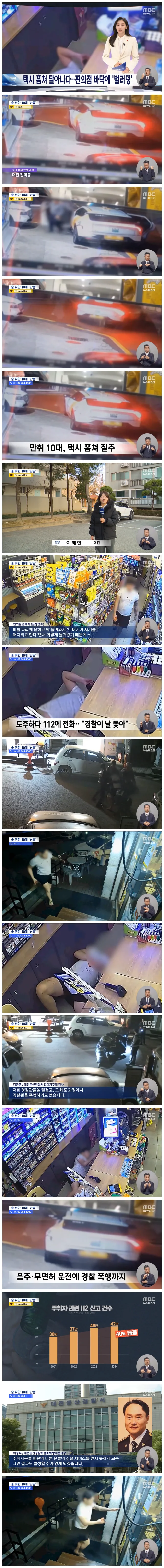 술에 취한 상태로 택시를 훔쳐 달아난 10대가 도주하다가 편의점에 뛰어 들어가 계산대에 드러누웠습니다.