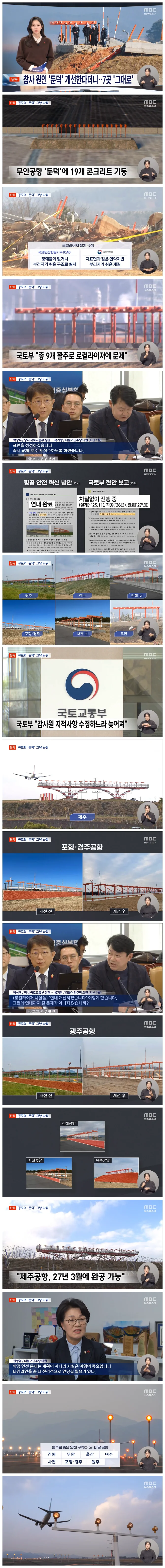 당시 전수조사를 통해 7개 공항의 9개 로컬라이저 구조에 안전 문제가 있다는 진단이 나왔지만, 지금까지 개선이 완료된 곳은 단 두 곳에 불과합니다.