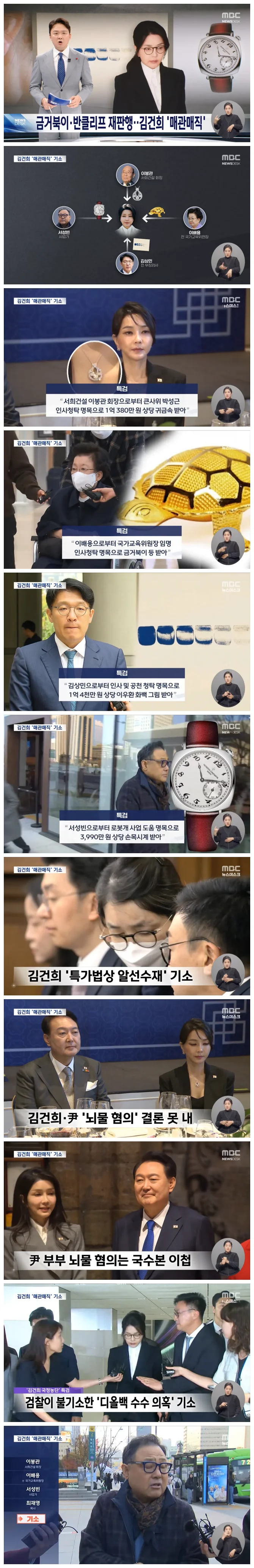 고가의 명품 반클리프앤아펠 목걸이와 바셰론 콘스탄틴 시계, 금거북이, 이우환 화백의 그림 등을 받고 매관매직했다는 의혹을 받아온 김건희 씨도 금품을 건넨 이들과 함께 재판에 넘겨졌습니다.