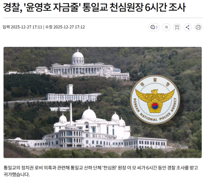 천심원은 통일교 산하 수련원의 자산 관리를 총괄하는 기구로, 윤영호 전 통일교 세계본부장의 자금줄로 알려졌습니다.