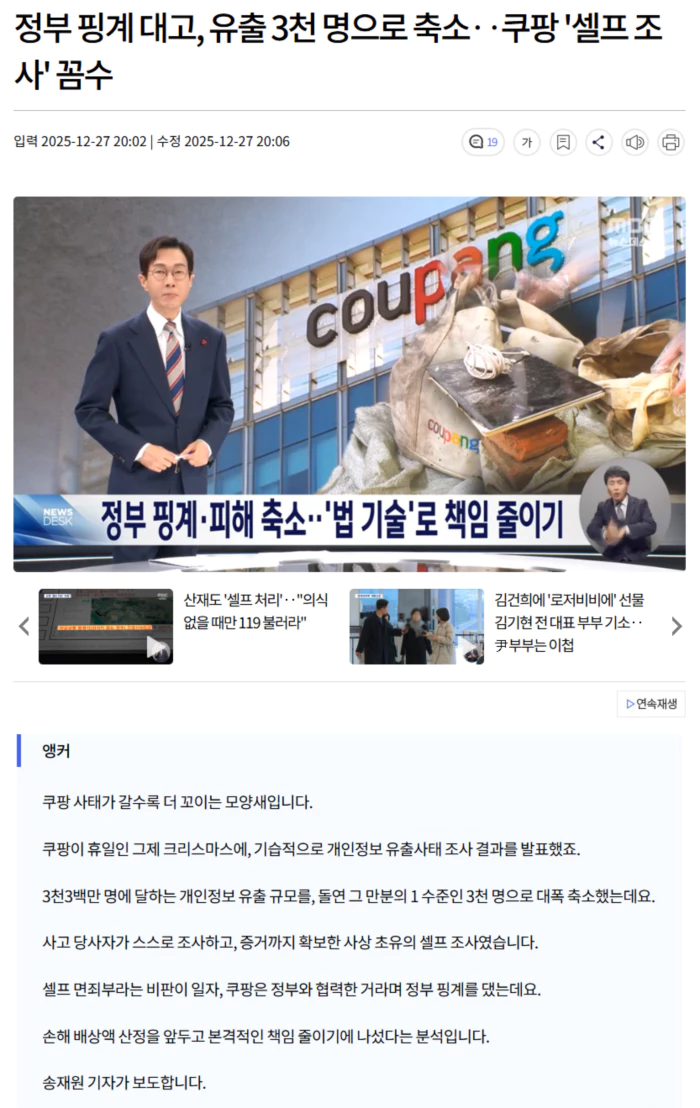 쿠팡은 또 유출자가 실제 저장한 고객 정보는 3천 개에 불과하다는 점을 재차 강조했습니다.