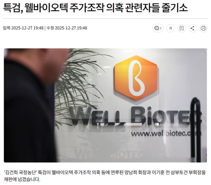 이들은 웰바이오텍이 우크라이나 재건과 리튬 원광 수입 사업에 참여한다는 내용의 과장된 보도자료를 배포해 주가를 올린 뒤 매도해 215억 원 상당의 부당이득을 챙긴 혐의를 받습니다.