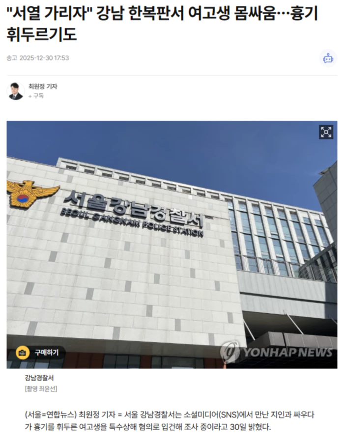 두 사람은 SNS를 통해 알게 된 사이로, 이전에도 몸싸움했다가 '서열을 가리자'며 다시 만나 싸운 것으로 전해졌다.