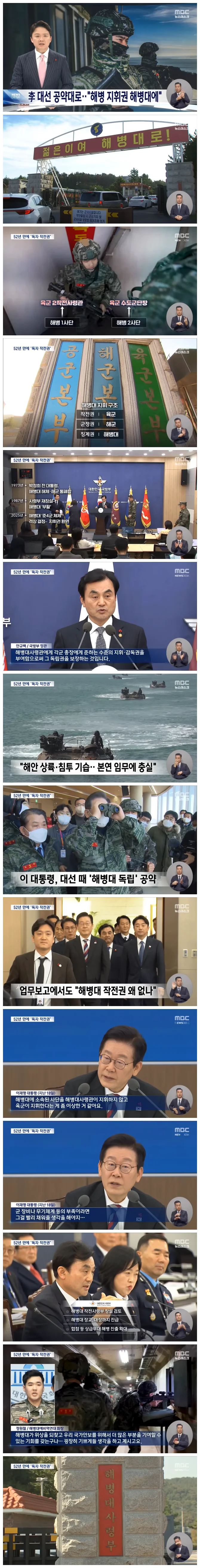 해병대의 오랜 염원이자 이재명 대통령의 대선후보시절 공약이기도 했는데, 해병대 작전통제권을 육군에서 해병대로 돌려준다는 점이 핵심인데요.