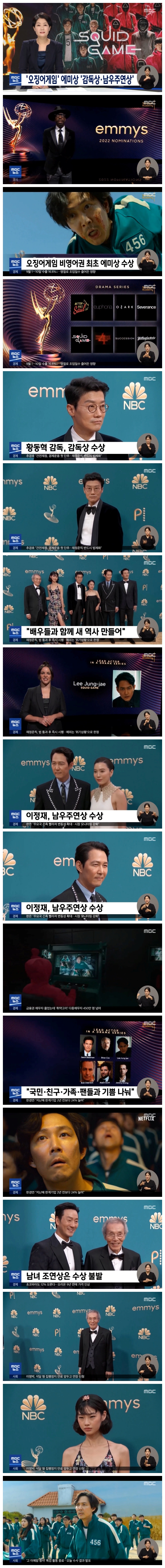 오징어게임이 쟁쟁한 미국 경쟁작 사이에서 수상에 성공하면서 영어가 아닌 언어로 제작된 드라마 최초의 에미상 수상이라는 새 역사에 이름을 올렸습니다.